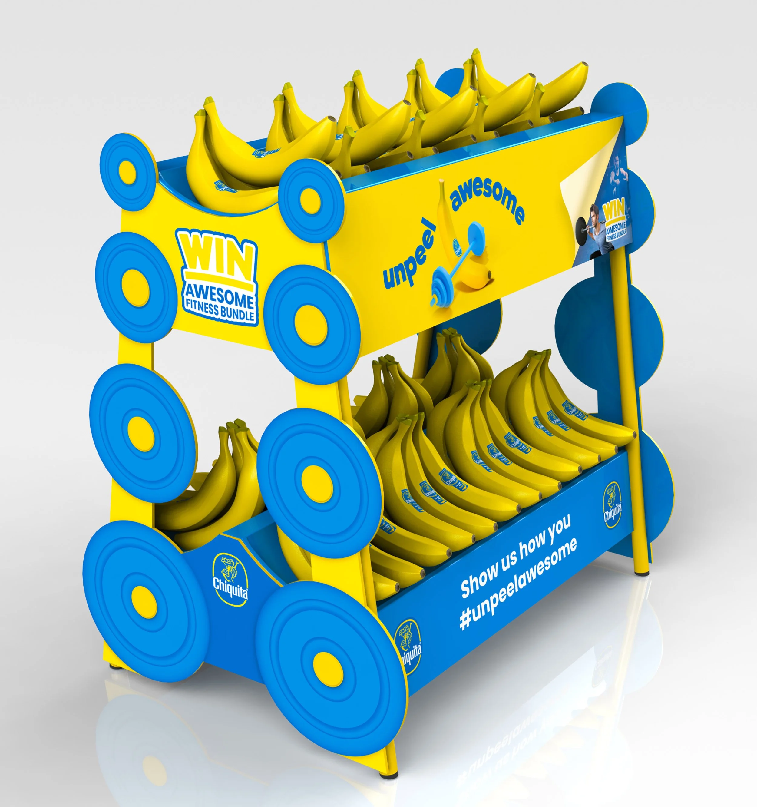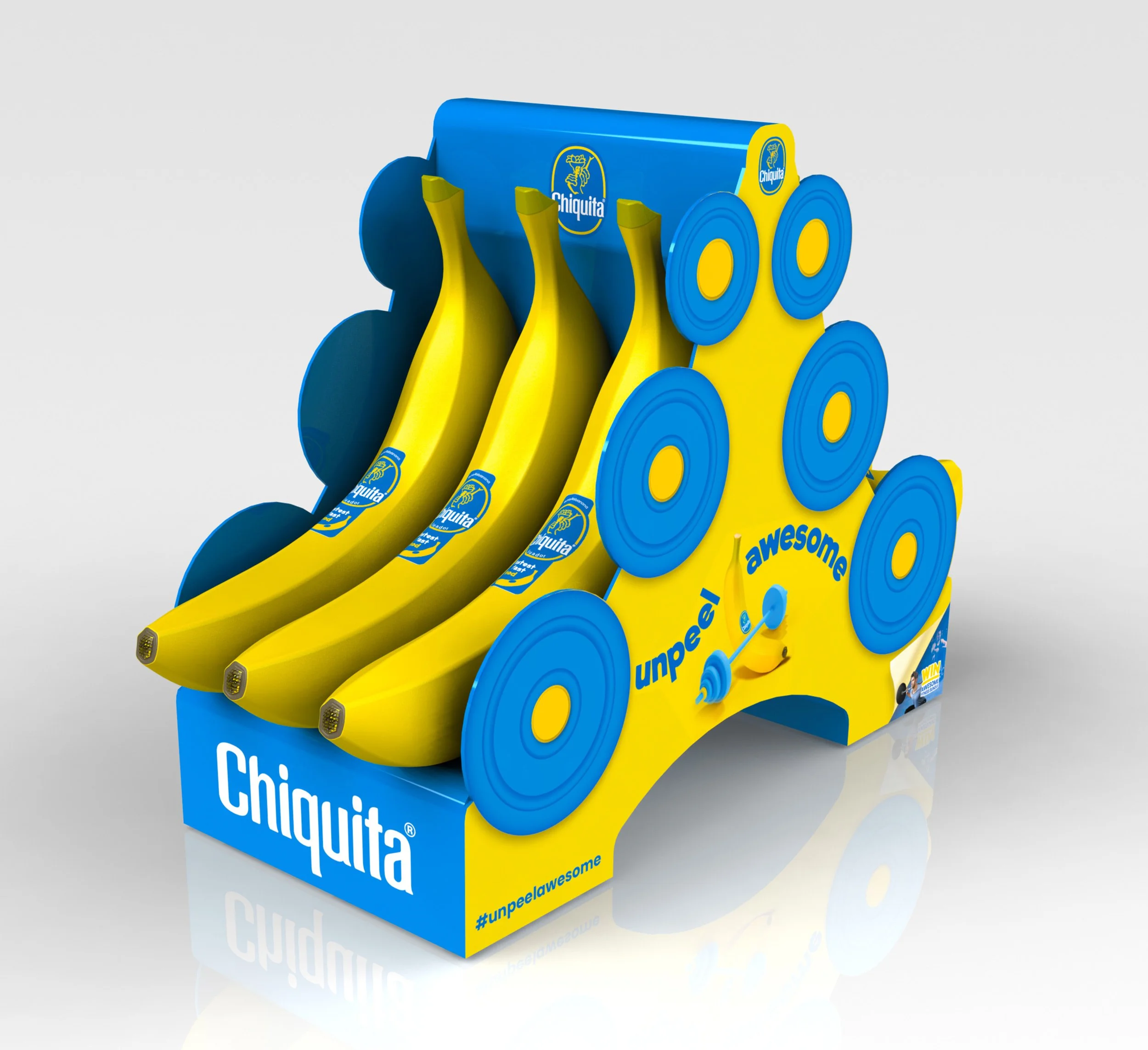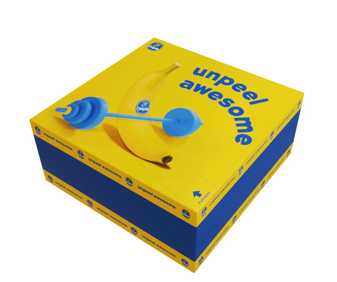 Chiquita bananas are packed with energy and nutrients to help you release your inner awesome. The Unpeel Awesome promotion illustrates this product truth. Playful, fun creative features a key visual of a single banana taking part in its own totally awesome workout!