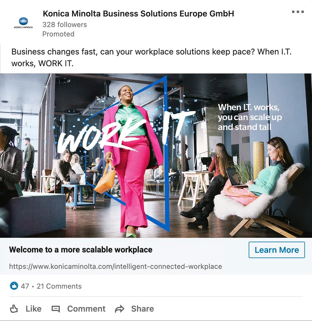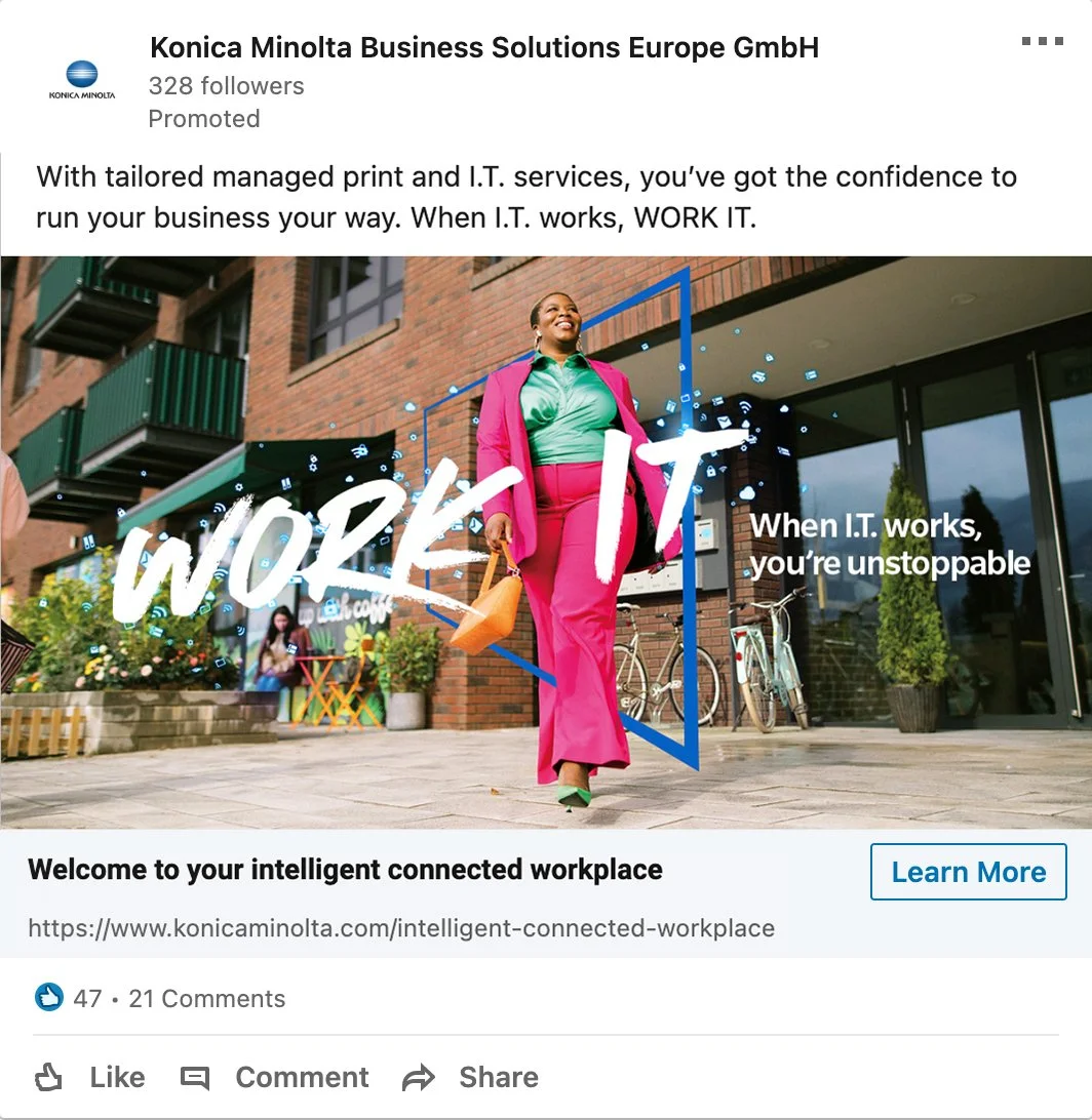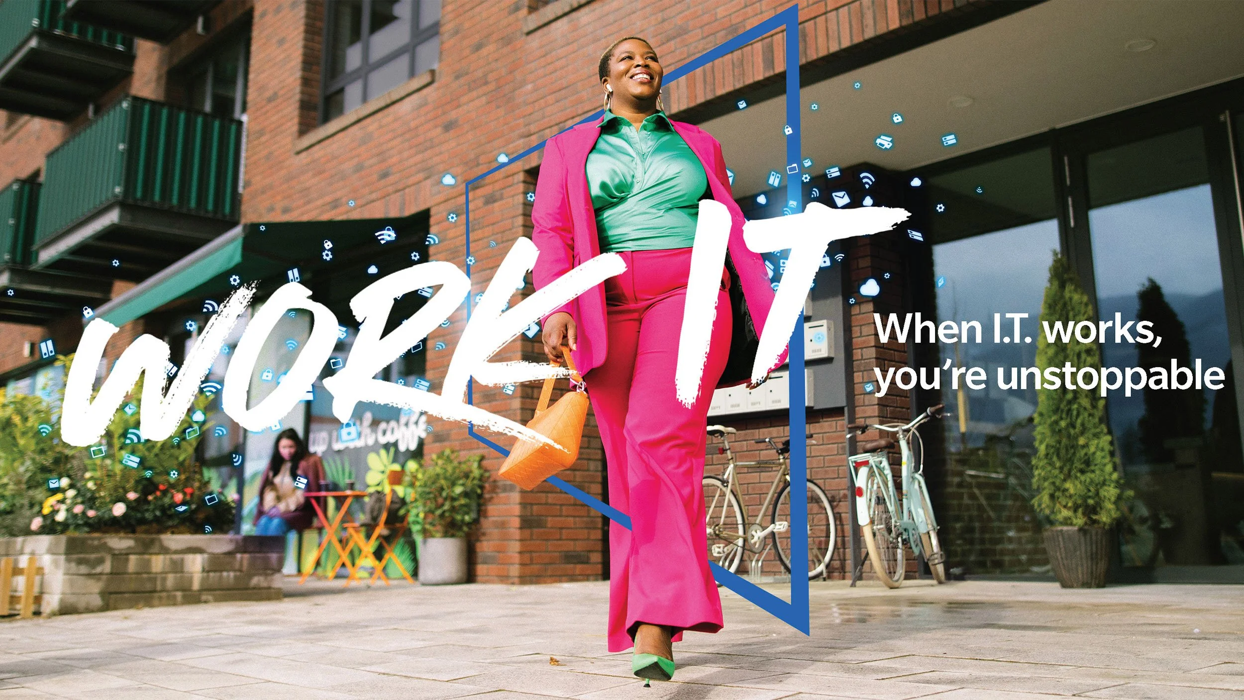 Our campaign film brings the Intelligent Connected Workplace to life with a narrative that shows how the digital solutions are enabling one small business owner as she commutes to work – because when I.T. works, she can WORK IT